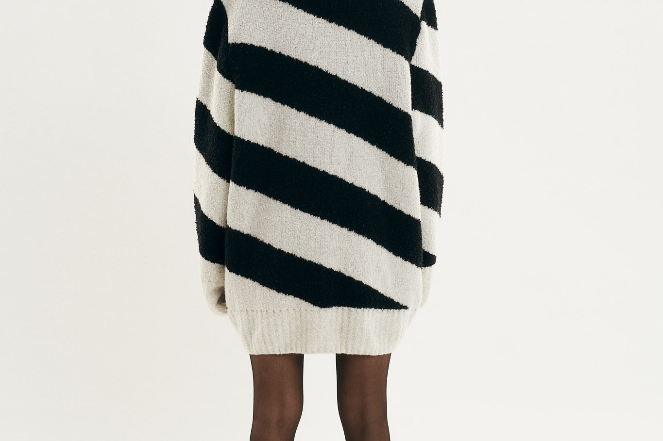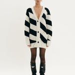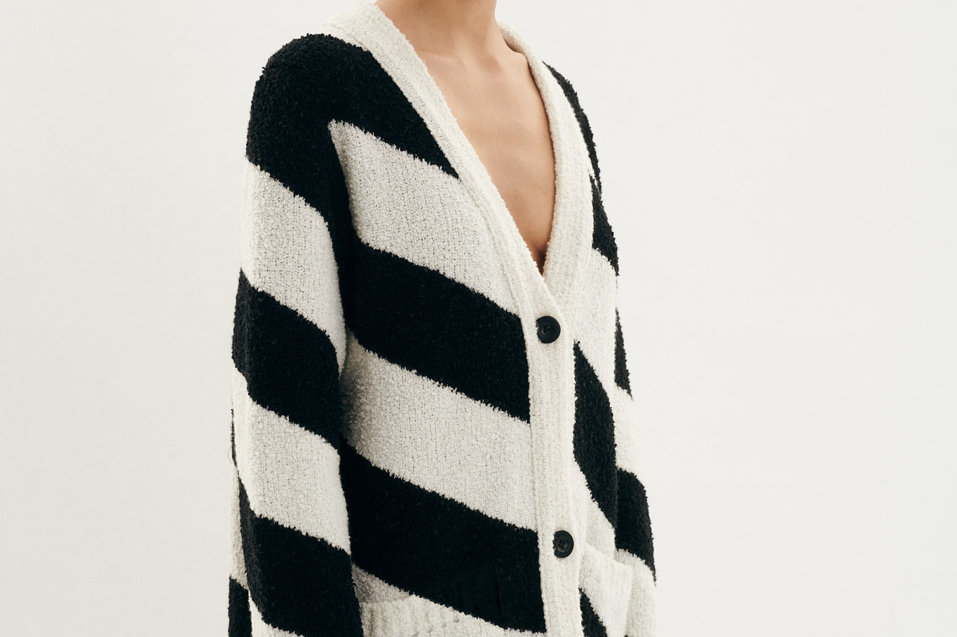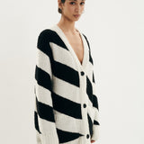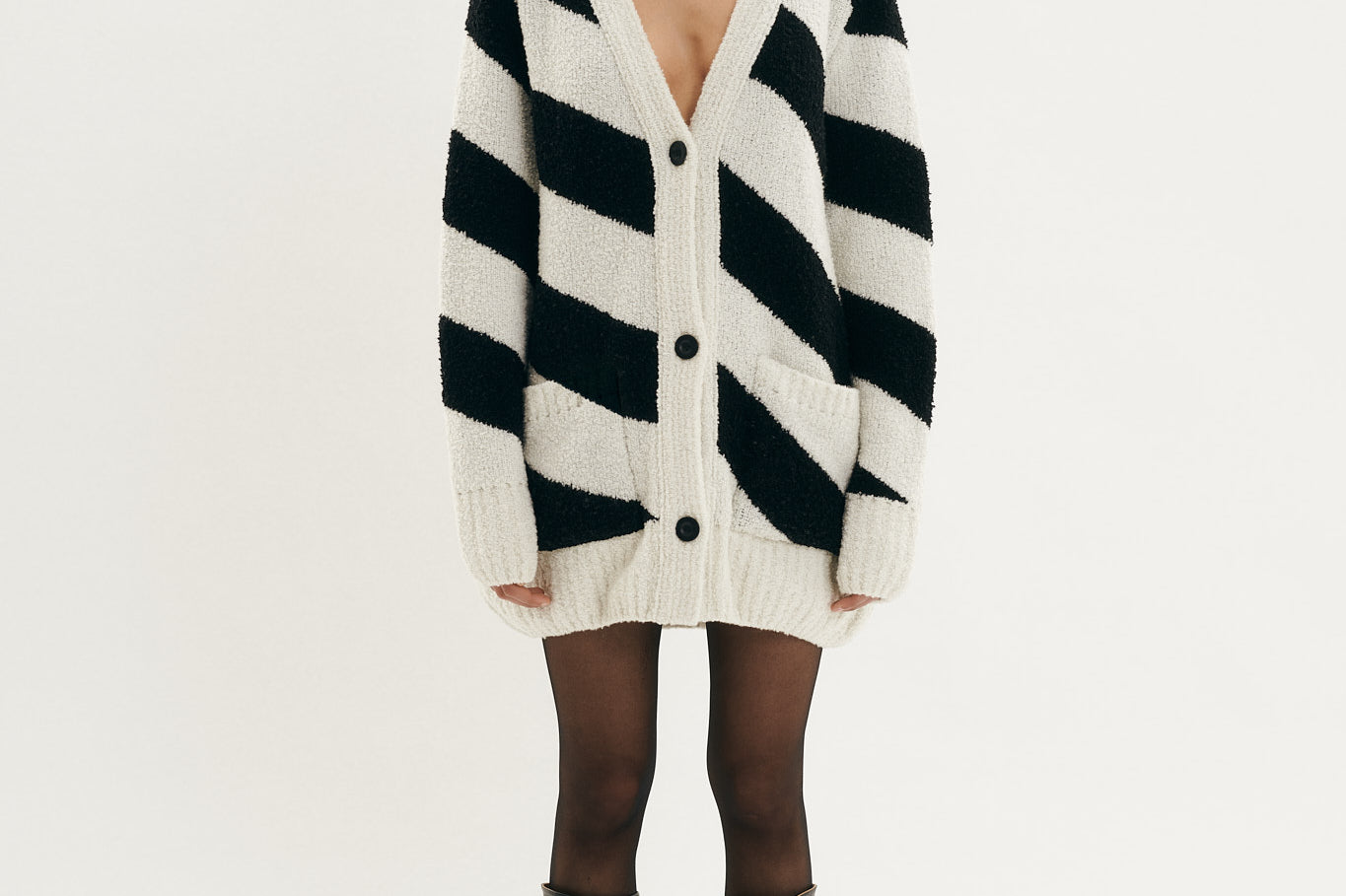 Ivette Striped Cardigan jest wykonany z wysokiej jakości wełny, która jest miękka i przyjemna w dotyku. Ma luźny, oversizowy krój.
