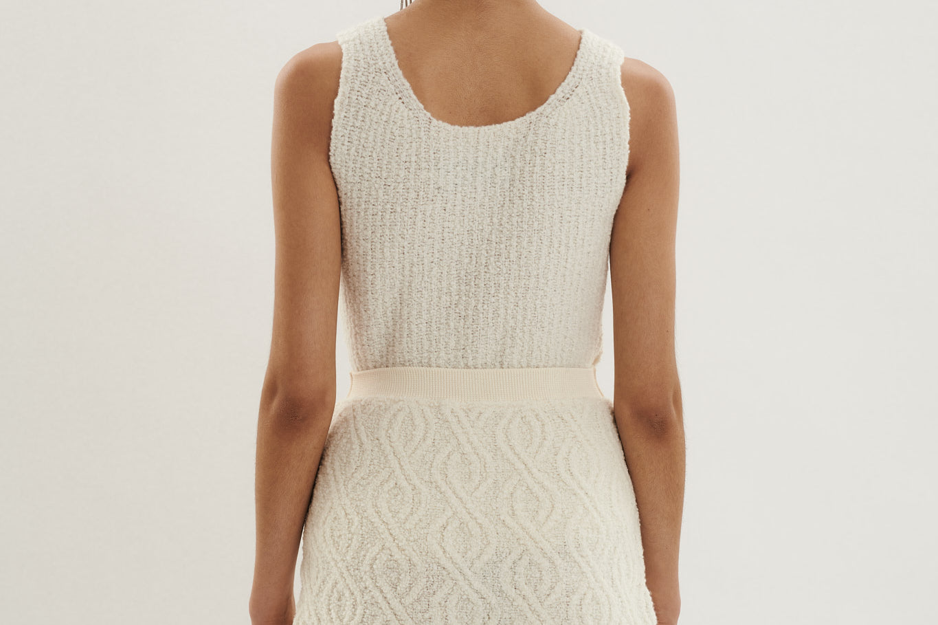Ève mini skirt is cable-knitted from high-quality wool blend that makes it soft and cozy for your skin. It is fitted yet very comfortable.