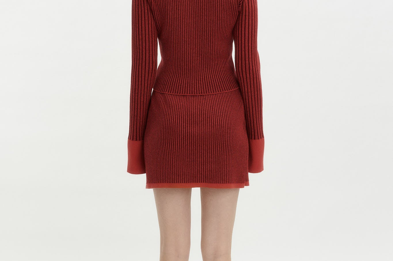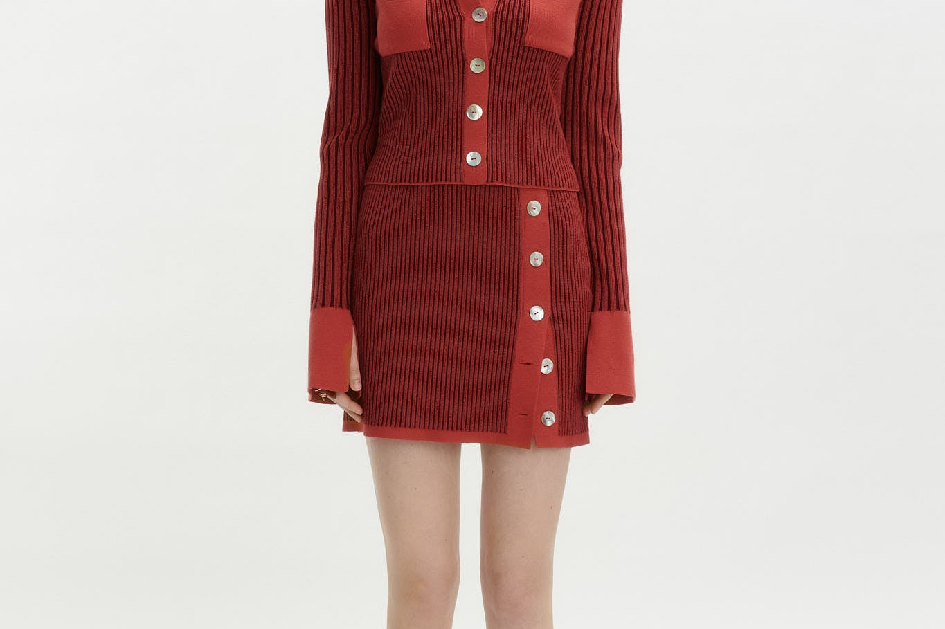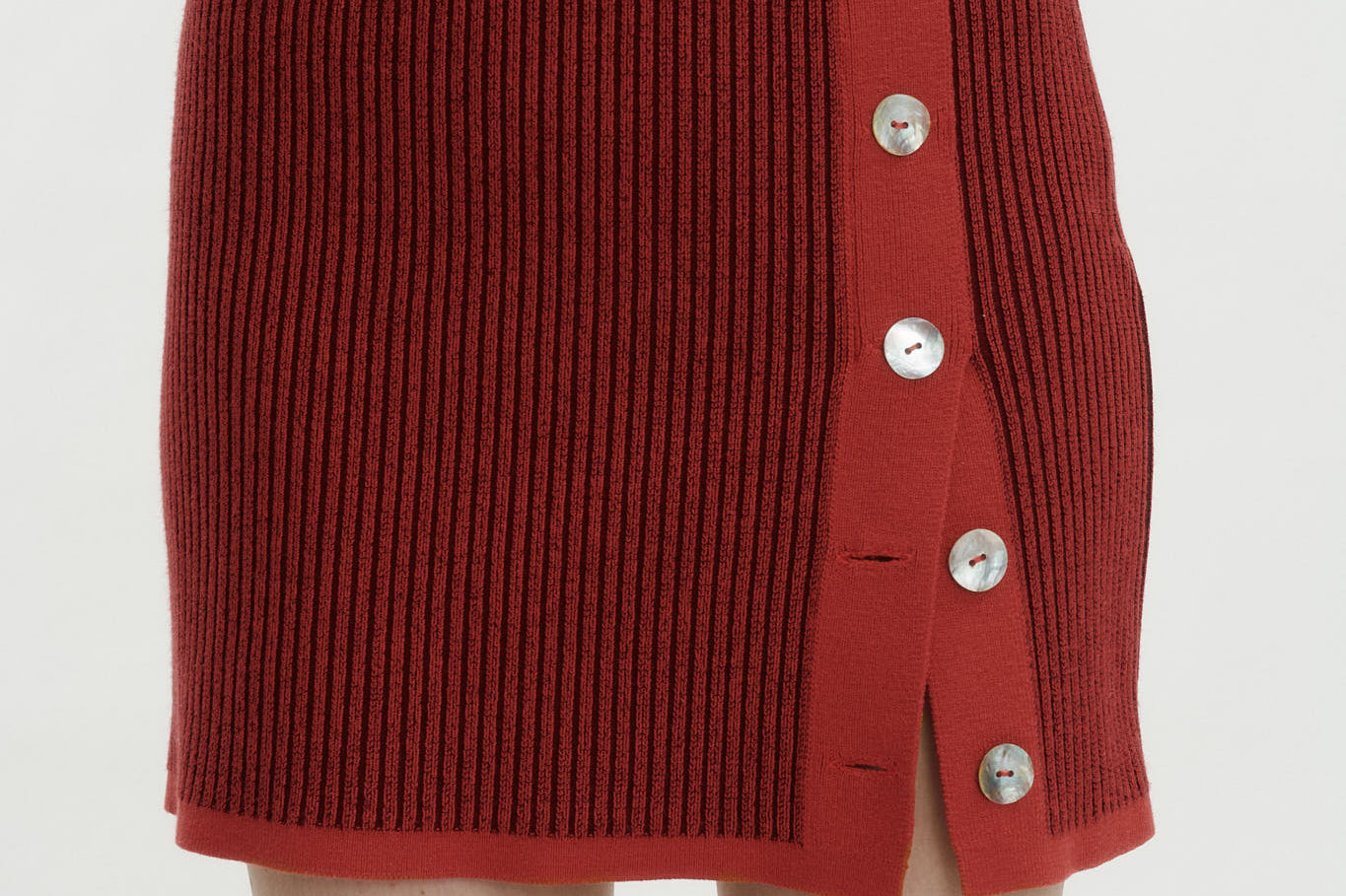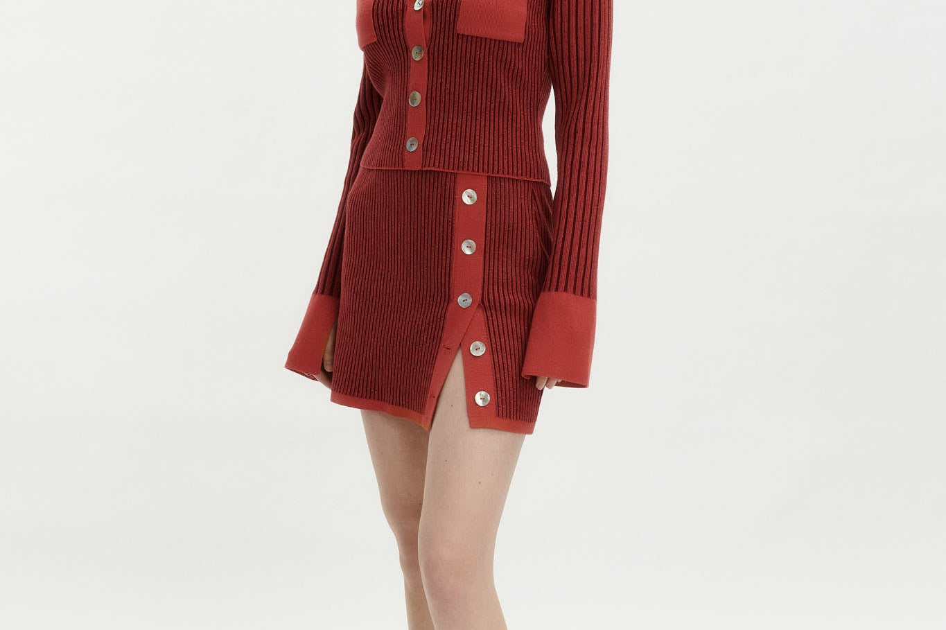 Florence Knitted Mini Skirt is made from a breathable viscose ecovero blend. It has a high waist and a cut-out to display the leg.
