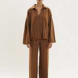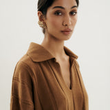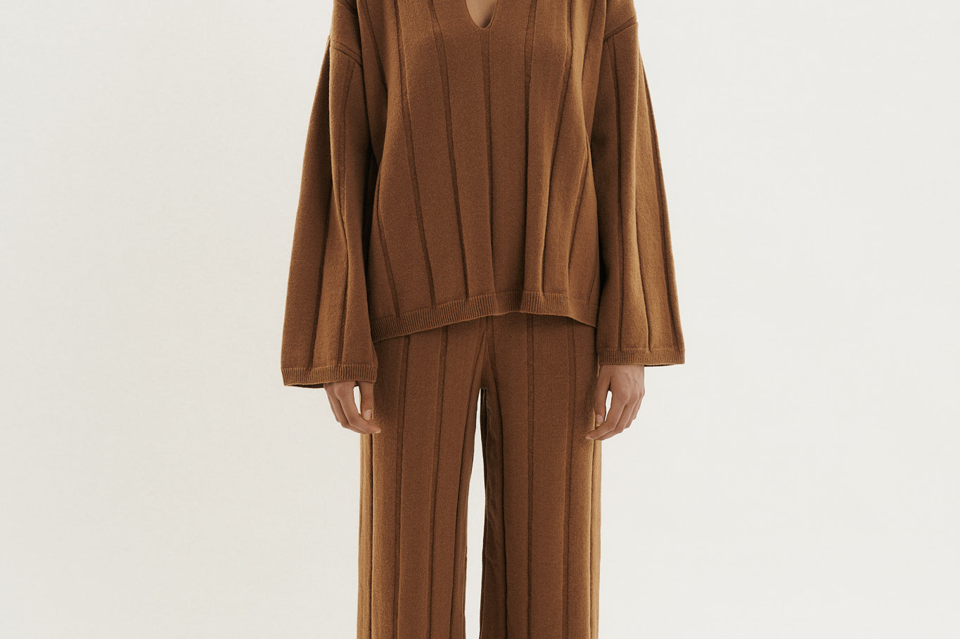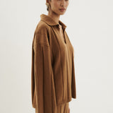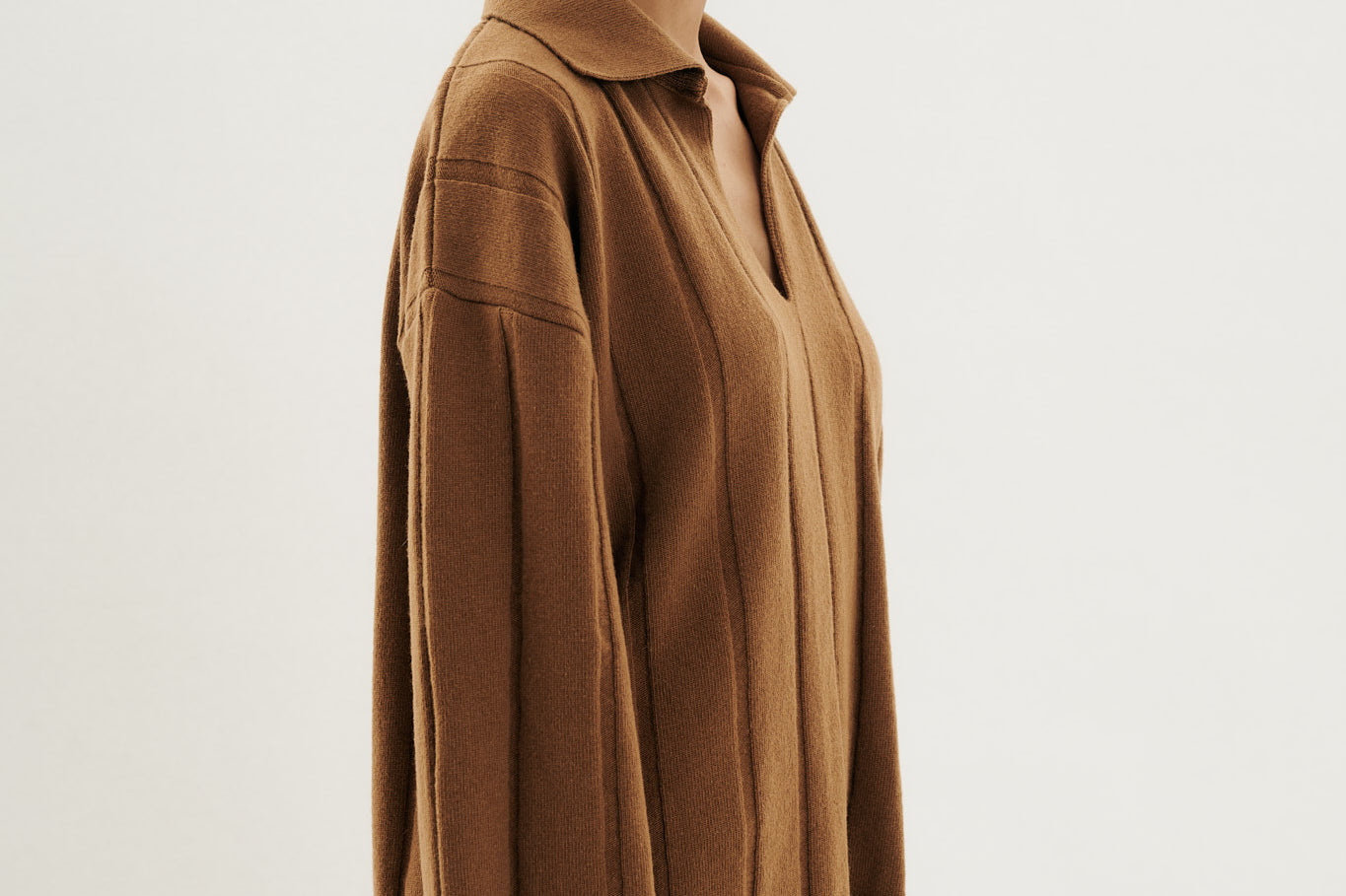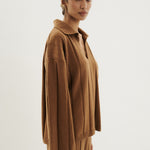 Rose is a v-neck collared top made entirely from high quality merino wool. It has a loose, cropped shaped and lowered shoulders.