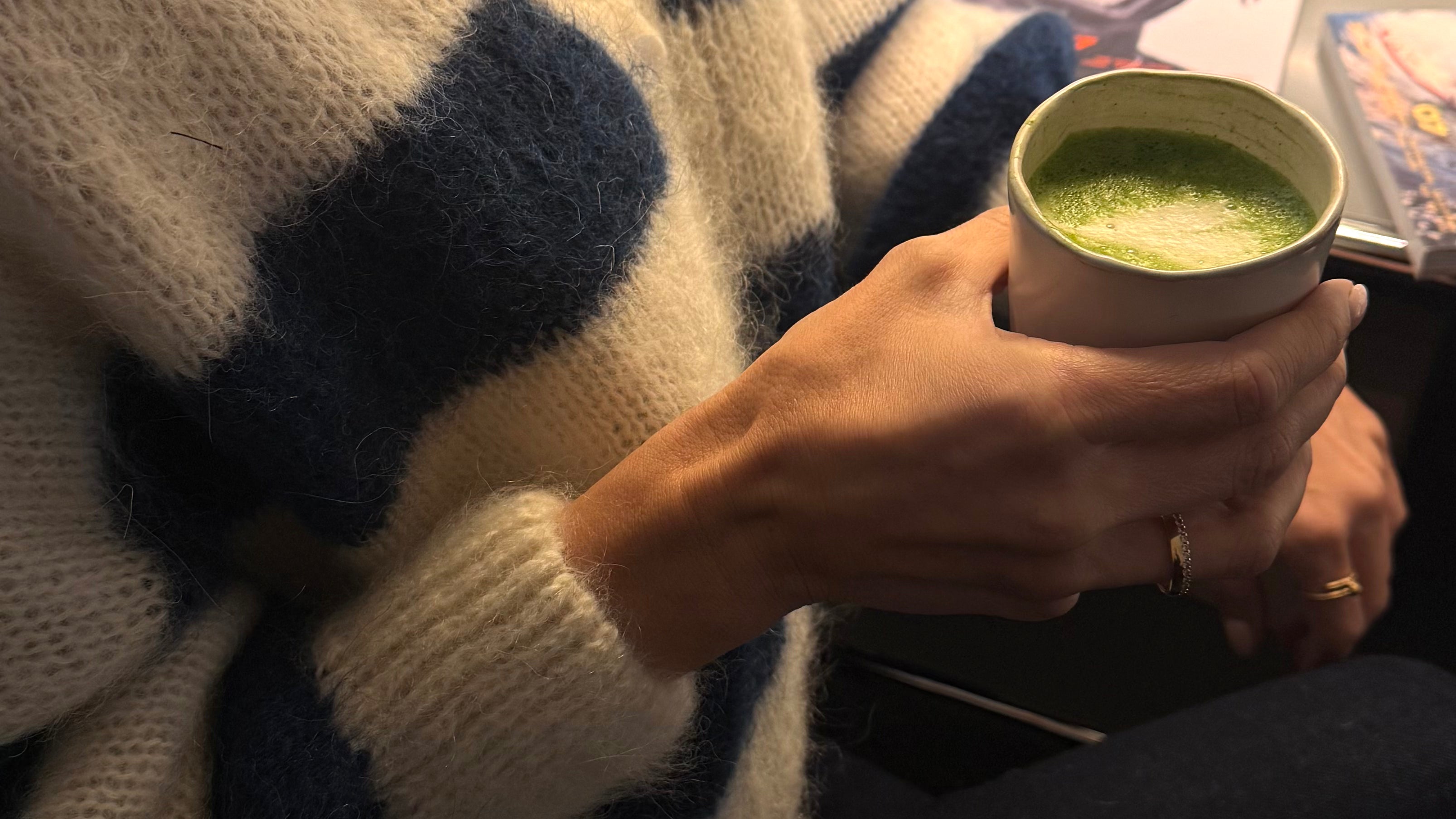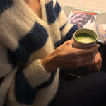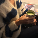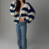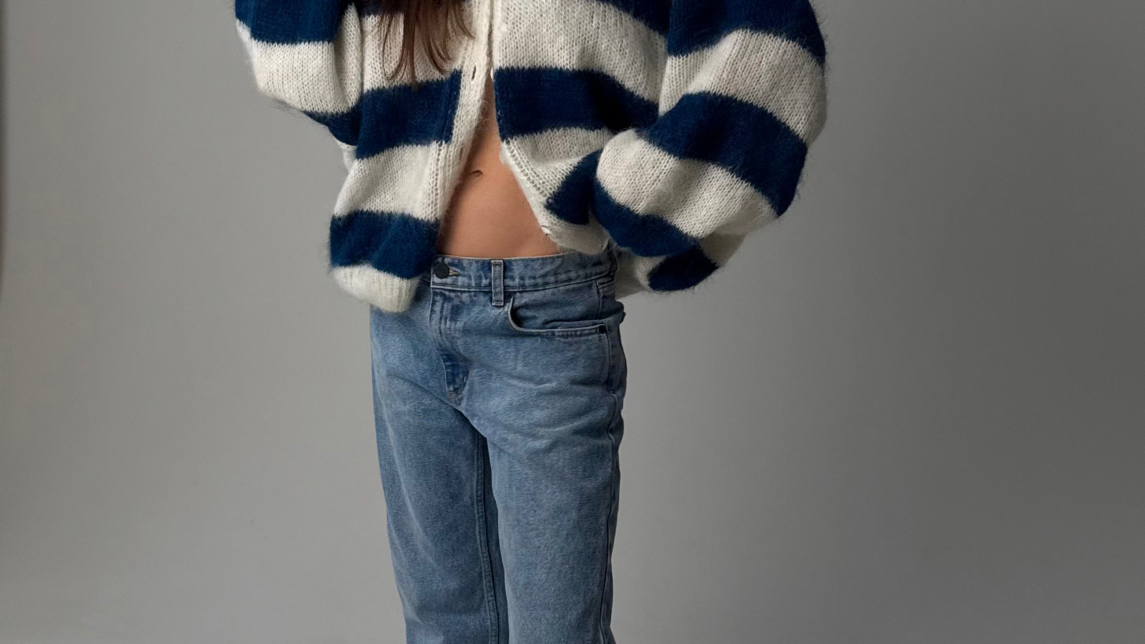 Moherowy sweter z szerokim rękawem w ponadczasowe paski.