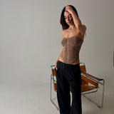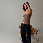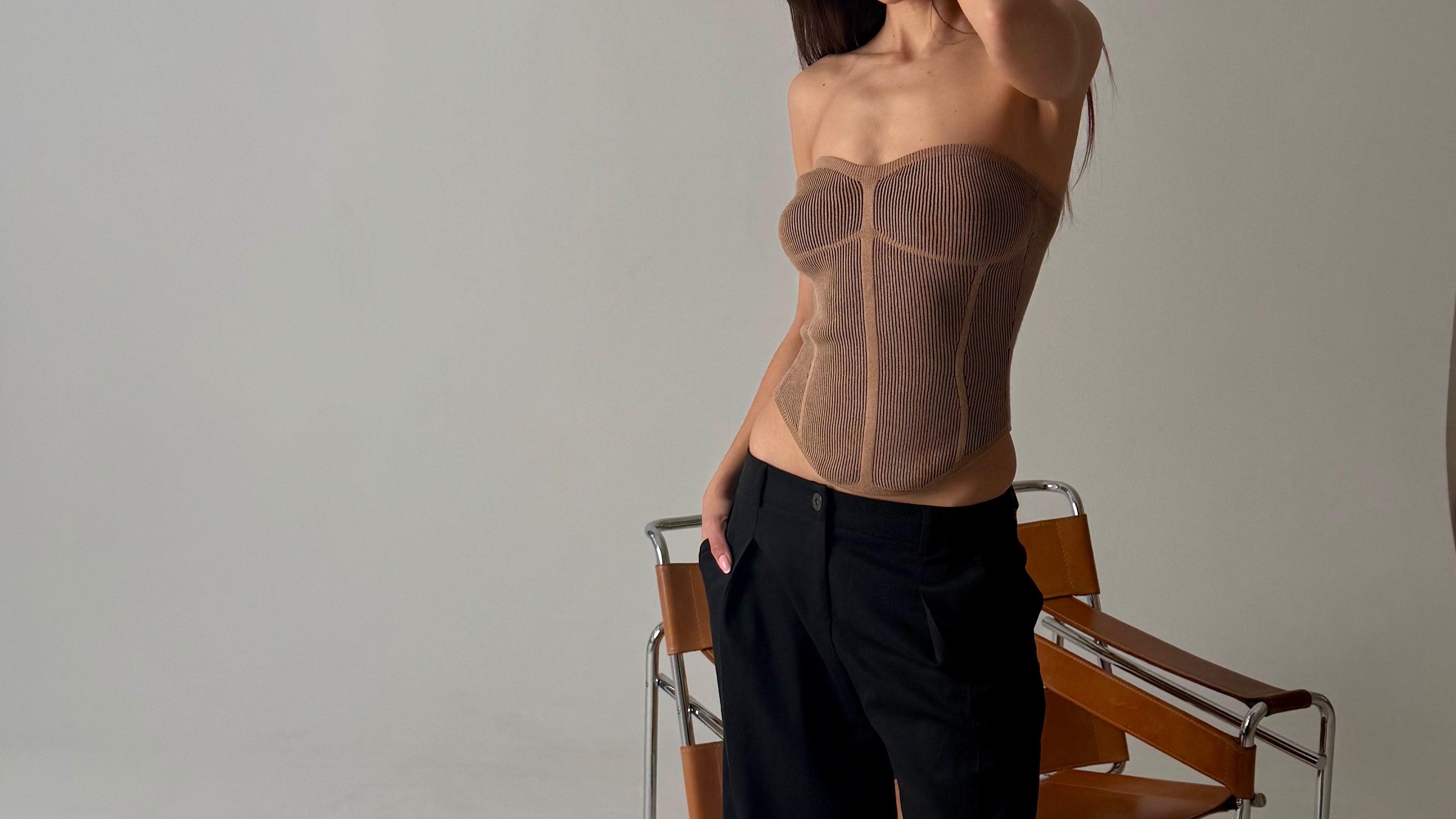Gorset z dzianiny z dekoltem. Wygodny top w kolorze beżowym, który tworzy modowy look.