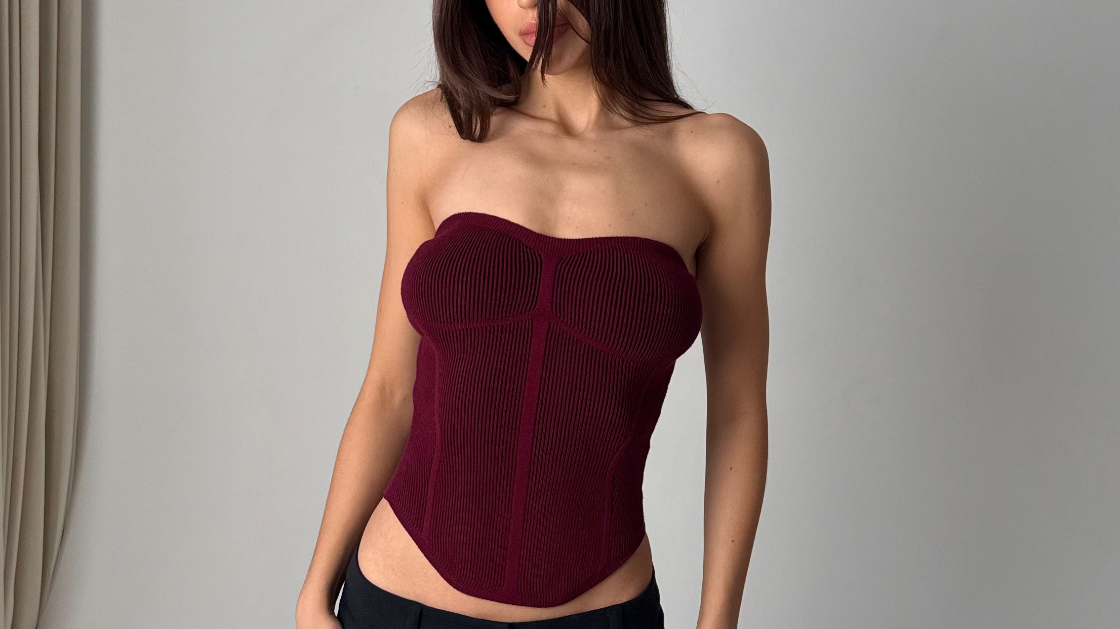 Gorset z dzianiny. Wygodny top w kolorze bordo, który tworzy modowy look.